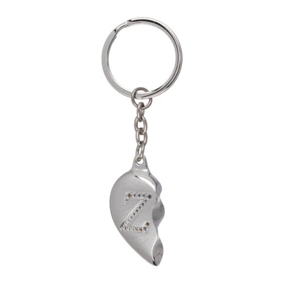 Metal Keychain, Broken Heart, Letter Z (duplex) – The elegant key ring with the engraved letter Z is a lovely ornament for your key ring. The shape of the broken heart also symbolises the addition of a second half and is therefore ideal as a gift for your partner to show that only with the second side does a whole heart come into shape. The silver coloured key chain is made of metal. Metal Keychain