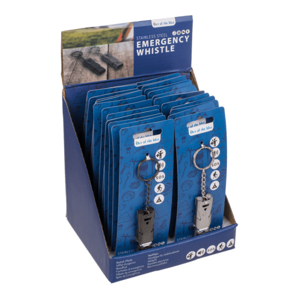 Metal keychain, Emergency Whistle, approx. 5,7 cm, stainless steel, 2 colours ass., 24 pcs. per display Keychain Whistle Emergency Stainless steel Tools Gadgets Compact Assorted colors Portable Safety