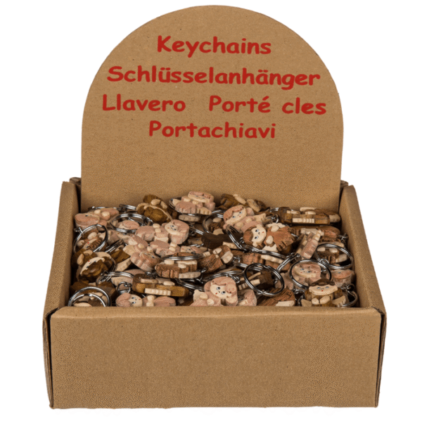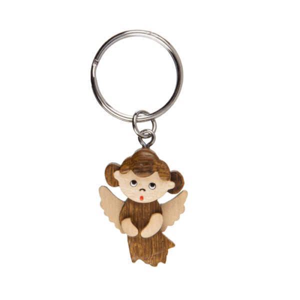 Metal keychain, Natural wood Angel, ca. X cm, 3 ass., 48 pcs. per display – The natural wood key rings are the perfect size to keep your key ring from becoming unwieldy. Made of natural wood, the subtle colours of the small angels make them a pleasant accessory that is ideal as a small additional gift for birthday surprise bags. Keychain