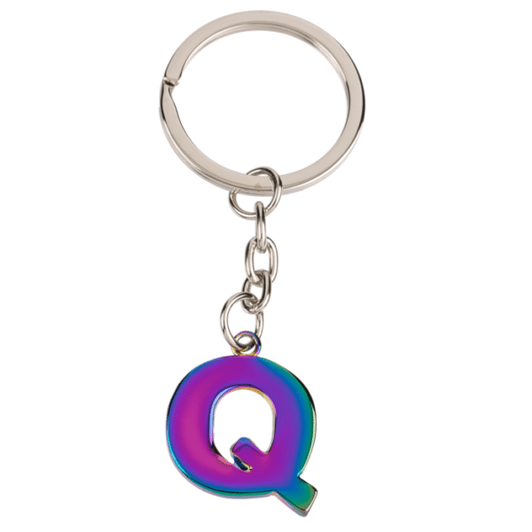 Metal Keychain, Rainbow Letter, letter Q – The elegant key chain in the shape of the letter Q visually enhances every key bunch! The metal key ring in rainbow colours is a welcome contrast to the dull grey keys. The pendant is ideal as a small gift for your beloved people. Colorful Keychain