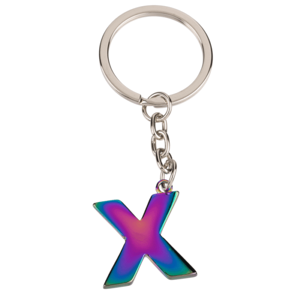Metal Keychain, Rainbow Letter, letter X – The elegant key chain in the shape of the letter X visually enhances every key bunch! The metal key ring in rainbow colours is a welcome contrast to the dull grey keys. The pendant is ideal as a small gift for your beloved people. Rainbow Letter