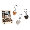 Metal Keychain, Worry Heart Natural Stones, ca. 3 cm, multicoloured, 90 pcs. per wooden box – Hand-held charms are said to direct the flow of energy from the moving hand to the whole body. This leads to a harmonious and calming effect and, in addition, the mind is stimulated and activated at the same time. So this heart-shaped natural stone keychain will help you erase your worries and make you feel better! Keychain