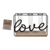 Metal plant holder on wooden base, Love, with 3 test tubes ca. 20 x 6 x 13,5 cm Metal plant holder