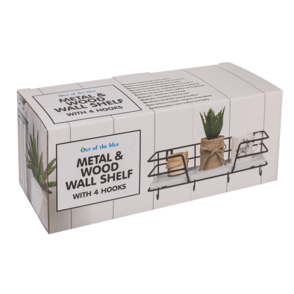 MetalWooden all shelf with 4 hooks, ca. 25 x 10 cm, in colorbox Industrial shelf