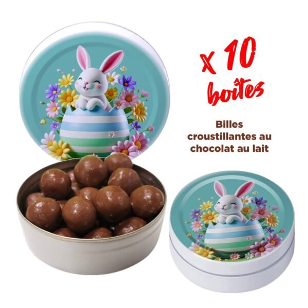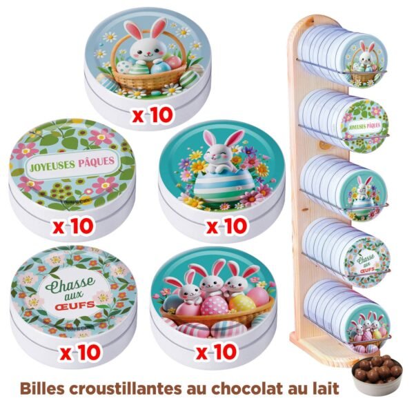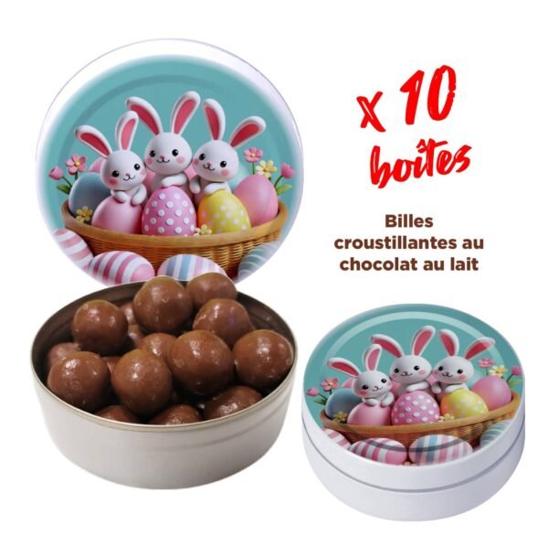 Celebrate Easter with a gourmet and elegant offer! Our exclusive pack includes 50 boxes of Laviel artisanal confectionery (Thermal confectionery), filled with 30g of crispy balls coated in milk chocolate, and illustrated with festive visuals.
