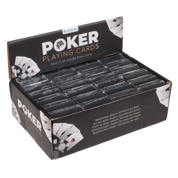 Mini Playing Cards, Poker, ca. 6 x 4 cm, 54 cards per deck, 24 pcs. per display – With a single deck of 54 cards, you can play an almost endless number of card games. Including the famous Poker. Use the playing cards to create a real casino feeling with your friends in your living room and round it off with an exciting game. Enjoy an entertaining match of poker, or perhaps rather skat? Mini Cards