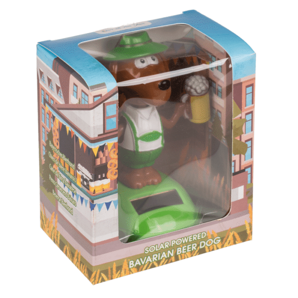 Moveable figurine, Bavarian Beer Dog, on plastic base with solar cell, approx. 11 cm, 3 ass., in gift box – Solar figurine