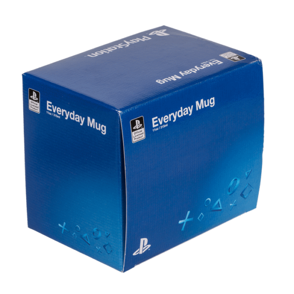 Mug, Playstation (Shapes), for ca. 325 ml, H: 10 cm, ceramic, in cardboard packaging – Everyone probably knows the combination of these four different shapes! This mug is perfect for fans of the famous game console. The ceramic mug is resistant to all kinds of drinks, whether cold or hot. The filling capacity of the cup is approx. 325 ml and is especially for lovers of the Sony Playstation a must-have! Gaming Mug
