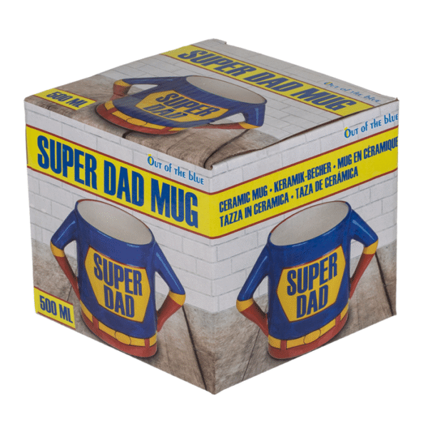 Mug, Super Dad, ca. 18 x 11 cm, stoneware – Fathers are true superheroes! And to bring your dad closer to this, we have a mug that fits perfectly! The Super Dad mug made of stoneware is more than perfect for your father’s birthday or Father’s Day. The ceramic mug comes in red, blue and yellow, just like the superhero outfits and is dishwasher safe! Coffee mug