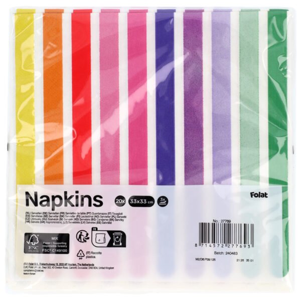 Always looks festive. Napkins – Stripetastic – 33 x 33 cm – 20 pieces. Contains: 20 napkins. You can use this article for the following party occasion(s): Birthday