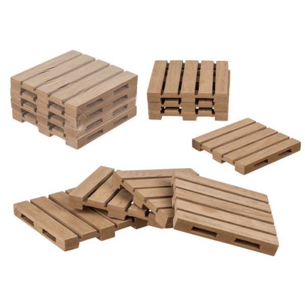 Natural coloured wooden coaster, Palette approx. 10 x 4 cm, set of 4 pcs – Skilfully showcase your coffee or other drinks with these miniature palettes! The drink coasters in the natural wooden look not only protect your table, but are also a real eye-catcher at any party. Each set contains four of the natural coloured wooden coasters. Wooden coasters