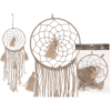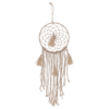 Nature coloured Dreamcatcher, Boho Style, with 4 tassel, ca. 27 x 70 cm, in polybag with header card – Dream catchers are said to improve sleep. The good dreams pass through the net, the bad ones get stuck and are later neutralized by the morning sun. The beautiful natural look fits into any interior with its restrained appearance and creates a dreamlike atmosphere. The decorative hanger with 4 tassel has a size of approx. 27 x 70 cm. Boho Dreamcatcher