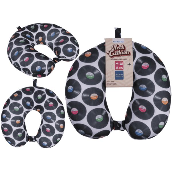 Neck cushion with micro pellet filling, Vinyl records, approx. 28 x 28 cm, with button closure and hanger, 85% Polyester & 15% Elastane, 100g filling, with banderole – Neck cushion comfort