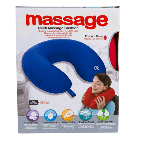 Neck Massager, ca. 31 x 30 cm, 100% polyester, 3 colours ass., for 2 mignon batteries (AA) in gift box – After a long day at work, there is nothing more pleasant than a portion of relaxation and, as an added bonus, a deep neck massage! This neck pillow offers you exactly that! The neck pillow is placed in the same way as normal neck pillows and thanks to the massage function, you can lean back and relax and let yourself be massaged. The pillow is powered by two AA batteries, which are not included. Portable