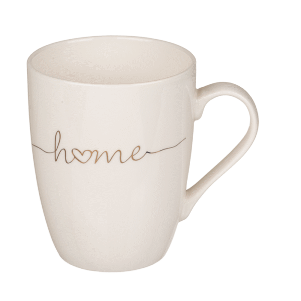 New Bone China mug, Home, ca. 8, 3 x 10, 4 cm, 2 colours ass. – The simple colours of these coffee cups will put you in a good mood right away in your kitchen! Thanks to the inscription, the cups exude a cosy flair, making morning coffee with your loved one twice as enjoyable. This way you can start the day off right with and enjoy every single sip! The cup has a capacity of approx. 300 ml and is as well a decorative eye-catcher in every kitchen. Bone China