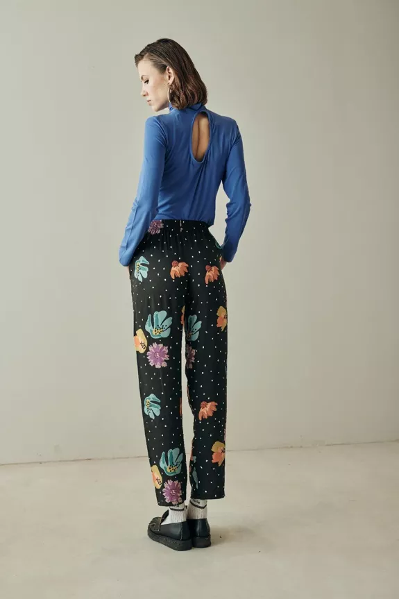 A fine and delicate piece that you will need to have in your winter wardrobe: a pair of straight Ecovero viscose trousers, high quality and made in Europe with this season’s original print. Its elastic waistband makes it a very comfortable and easy-to-wear garment, giving your most elegant outfits incredible comfort.Its fabric has a wonderful drape, is of very high quality and will give your looks an elegant touch of color.