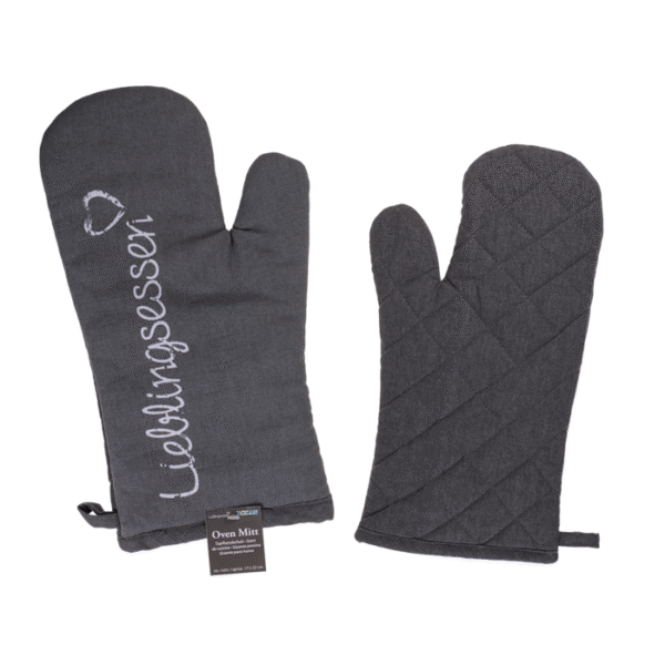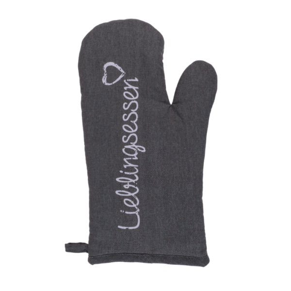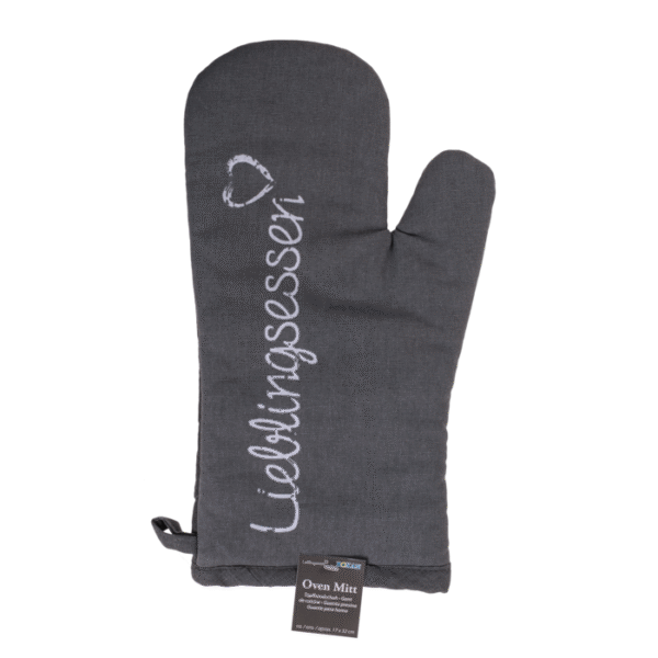Oven Mitt, Lieblingsessen, approx. 17 x 32 cm, 80% cotton, 20% polyester – Tasty food is pretty much always boiling hot! And to avoid burning your fingers, which would be pretty bad if you still want to eat something, this oven mitt will help you to safely take your food out of the oven or off the cooker. The oven mitt is made of 80% cotton and 20% polyester. Kitchen accessory