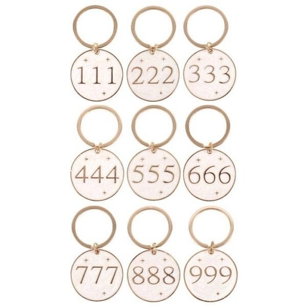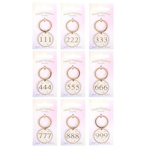 Unlock the power of divine guidance with this Set of 36 Angel Number Metal Keyrings on a matching retail display. Each beautifully designed keyring features a unique angelic number, believed to convey spiritual messages and support from the universe. Crafted from durable metal, these keyrings are not only a stylish accessory but also a source of inspiration and positive energy. A thoughtful and meaningful gift for yourself or a loved one to carry wherever you go. Set includes 4 of each angel number keyring.