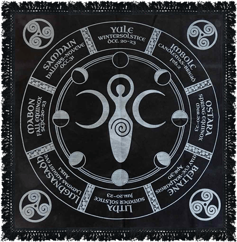 Discover the Pagan Wheel of the Year Altar Cloth by Green Tree Candle Company, an exquisite piece designed to enhance your space. This Eastern Altar Cloth Tarot Tablecloth, measuring 60X60 cms, is not just a tapestry but a textile work of art. Infused with the essence of Eastern traditions, it creates a serene and harmonious atmosphere in any room. Experience quality and tranquility with this unique offering.