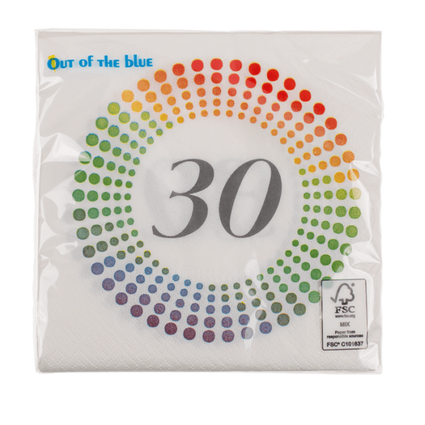 Paper napkins, Birthday – 30, aprox. 33 x 33 cm, 3 layers, 20 pcs. per polybag – Decorate the birthday table in the theme of the achieved milestone with these paper napkins! Each package contains 20 pieces of the three-ply napkins and thanks to the inscription, it’s not hard to see how many candles are on the guest of honour’s cake! The napkins are ideal as gift additions and as decorative elements on the cake table. Birthday napkins
