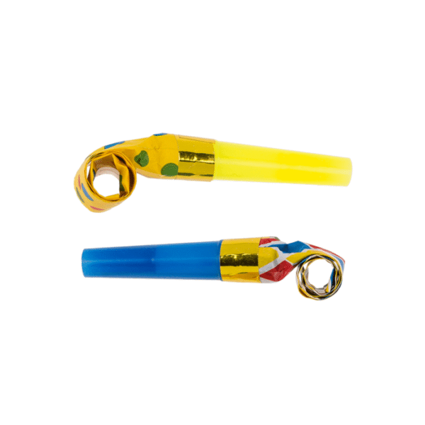 Paper party horn, ca. X cm, 10 pcs. in poly bag with header card – There is hardly anyone who does not know them or has never heard their unmistakable sound: At parties, birthdays and on New Year’s Eve, the loud trumpets are the absolute hit! The mini trumpets are simply fun! When you blow into them, the little trunk fills with air and immediately everyone is awake again! Party horn