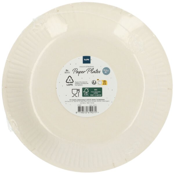 Disposable Plates Unicorns & Rainbows 23cm – 8 pieces. Contents: 8 plates. Colour: Multi Colors. You can use this article for the following party occasion(s): Birthday and Children’s party. These plates have a diameter of 23 cm. The article is made from FSC® certified paper.