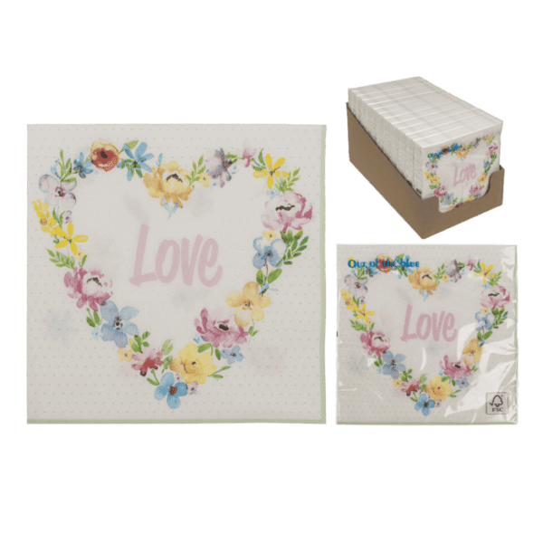 Paper tissues, Love, 33 x 33 cm, 3 layers, 20 pcs in polybag – FSC MIX – love paper napkins romantic paper napkins Valentine’s Day napkins wedding paper napkins 33×33 cm napkins 3-ply paper napkins FSC MIX certified napkins disposable paper serviettes party paper napkins eco-friendly paper napkins