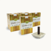 You get a smooth, lasting scent from these bricks, which are made with natural ingredients. You get a holder with the package, so everything’s ready to go. You just light the brick, blow out the flame, stick it in the stand and let the golden smell fill your space. They come in a pack of 6 boxes.
