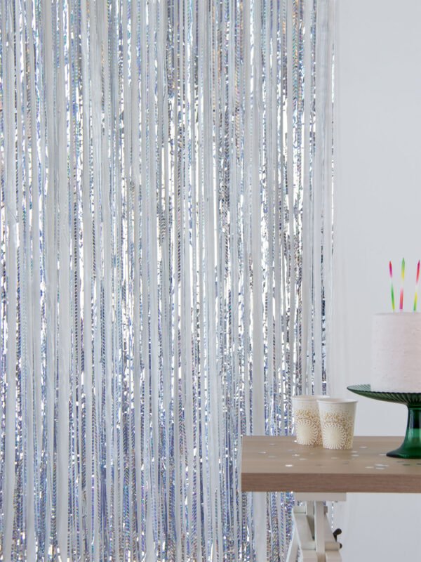 A cosmic entry. Party Curtain – Laser Beam Silver – 1 x 2 m. Contains: 1 party curtain. You can use this article for the following party occasion(s): Birthday