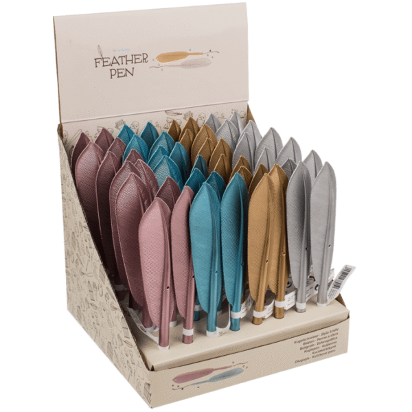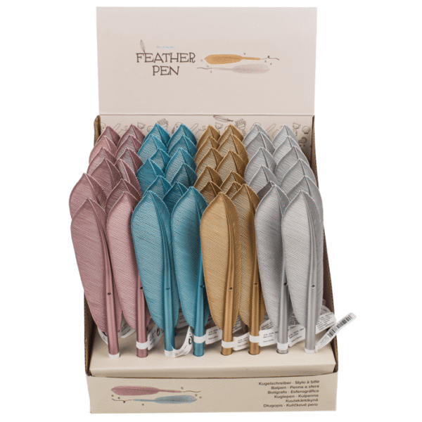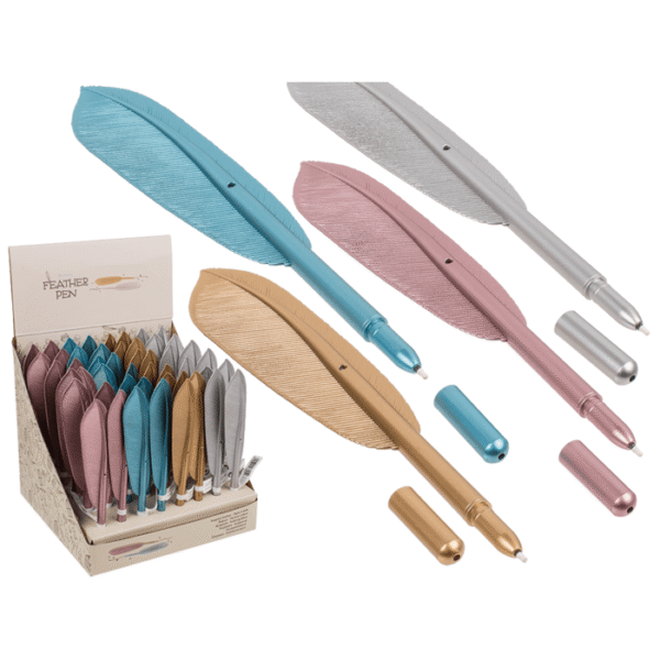 Pen, Feather, approx. 21 cm, plastic, 4 colours ass., 48 pcs. per display Writing instrument