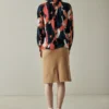 Beautiful graphic print shirt in fuchsia, white, and black. Its fabric is a pleasant viscose, with an elegant drape, a silky feel, and its buttons are taque, sustainably and locally made in Barcelona. A very versatile piece that you can wear every day or for more special occasions, depending on how you style it.