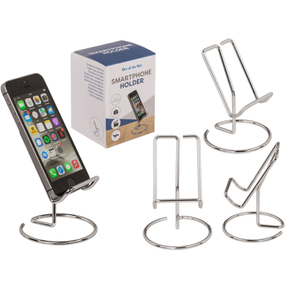 Phone holder, Silver, approx. 10 x 8 cm, made of metal, in gift box Phone stand