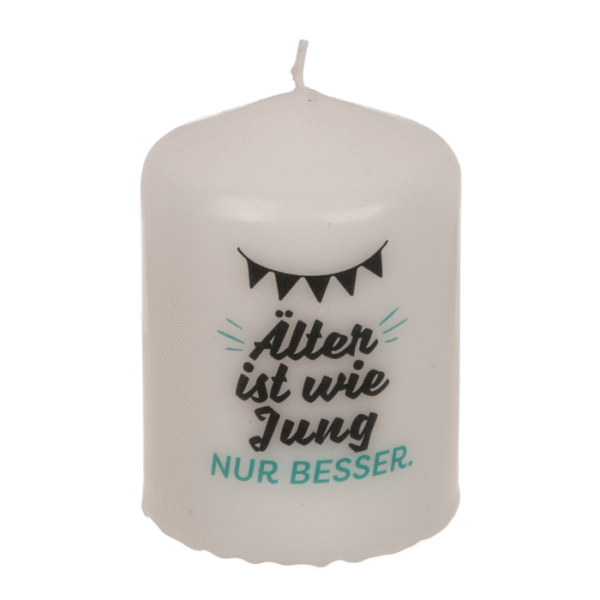 Pillar candle, Älter ist wie jung, nur besser, ca. 6 x 8 cm, in craft paper box – Birthday candle