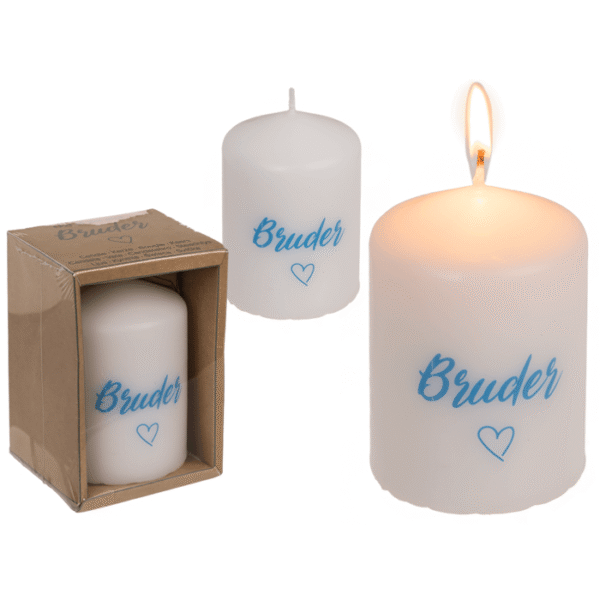 Pillar candle, Bruder <3, ca. 6 x 8 cm, in craft paper box Pillar candle