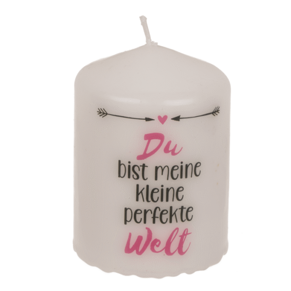 Pillar candle, Du bist meine kleine perfekte Welt, ca. 6 x 8 cm, in craft paper box – Candle