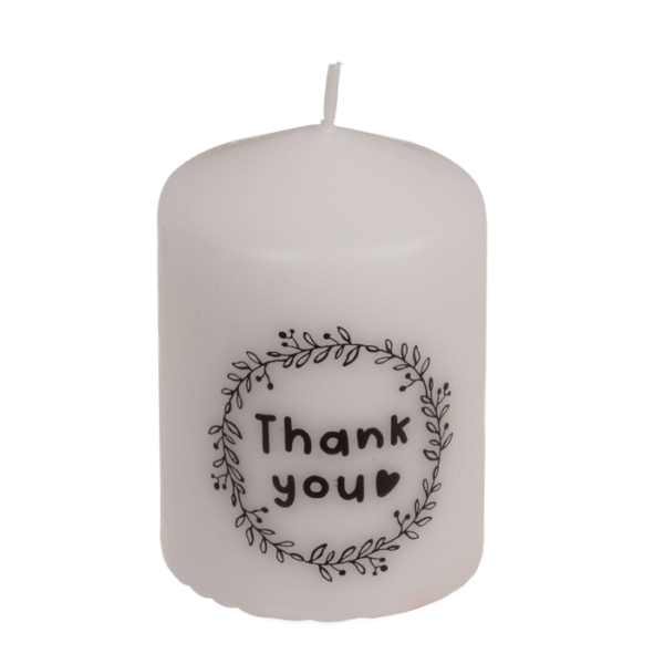 Pillar candle, Thank You, ca. 6 x 8 cm, in craft paper box Candle