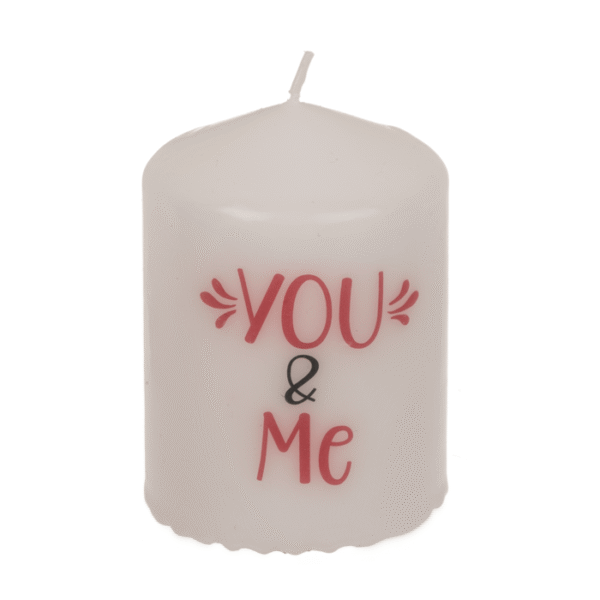 Pillar candle, You & Me, ca. 6 x 8 cm, in craft paper box – Candle Gift Celebration Romance Couple Love Birthday Crafted Boxed Decorative