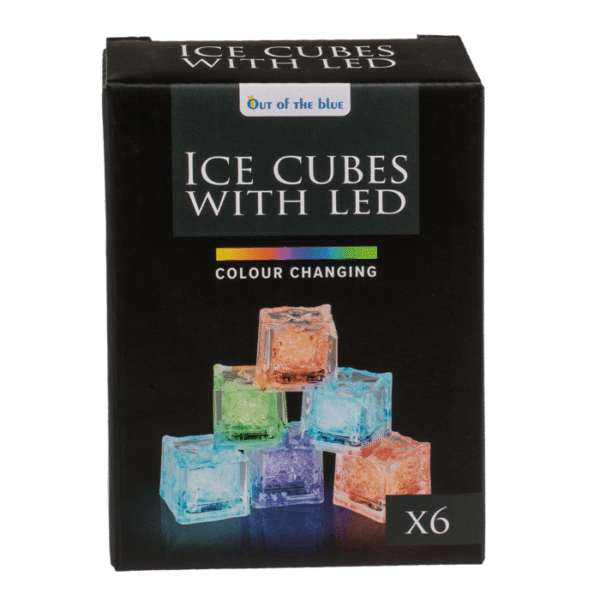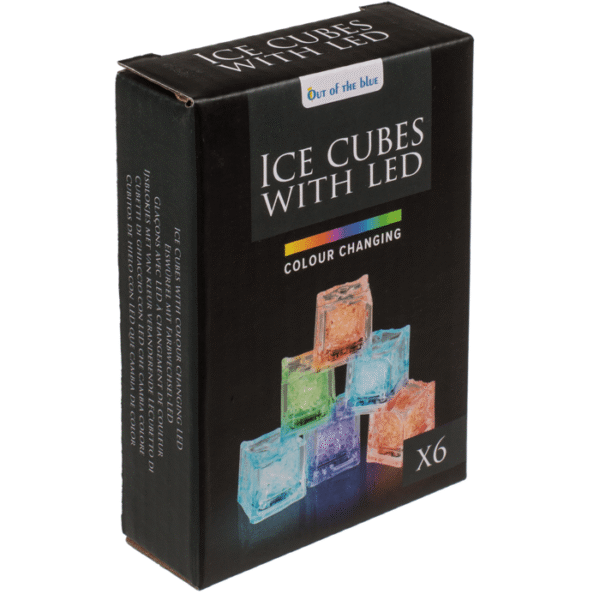 Plastic ice cube with LED, colour changing, 2.7 x 2.7 x 2.6 cm, set of 6, in giftbox LED ice cubes