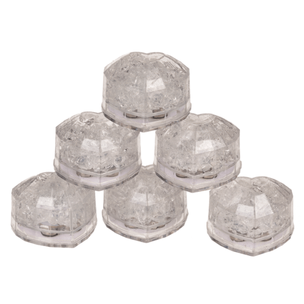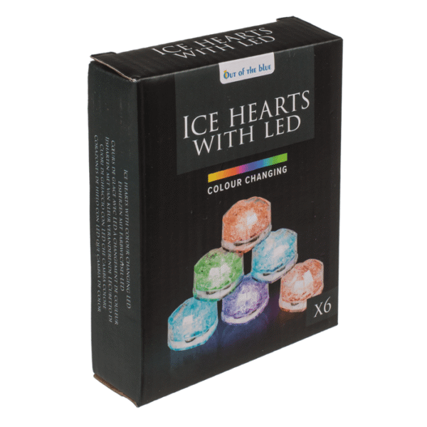 Plastic ice heart with LED, colour changing, 3.8 x 3.5 x 2.6 cm, set of 6 in gift box LED ice hearts