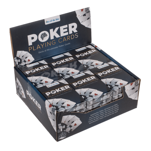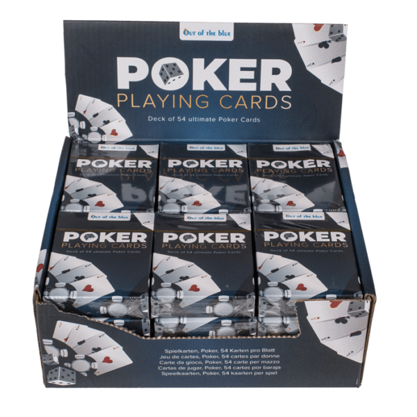 Playing Cards, Poker, 54 cards per deck, 24 pcs. per display – With a single deck of 54 cards, you can play an almost endless number of card games. Including the famous Poker. Use the playing cards to create a real casino feeling with your friends in your living room and round it off with an exciting game. Enjoy an entertaining match of poker, or perhaps rather skat? Card Games