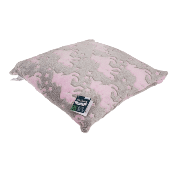 Plush cushion, Unicorn, with glow in the dark, 40 x 40 cm, 100% polyester, filling weight: 280g, vacuum packed, 6 pcs in polybag Unicorn cushion