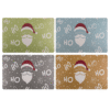 Polypropylen placemat, HO HO Santa, ca. 43, 5 x 28, 5 cm, 4 colours ass.,12 pcs. per polybag Santa placemat
