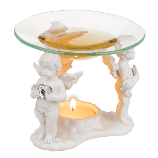 Polyresin oil burner with glass bowl, Standing angel with crystal heart, ca. 11,8 x 11,8 x 10,5 cm – Angel decoration