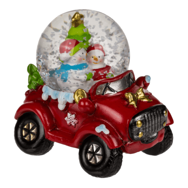 Polyresin snow globe with Christmas figurines on, car base, ca. 7,7 x 6,9 cm, 3 ass., 9 pcs per display – Not in the Christmas mood yet? Well then you have to be impressed by the snow globe! Our cute snow globes on a car base can convince any Christmas opponent! Whether as a gift for your guests at Christmas dinner or as a decoration on your mantelpiece, the globe fits perfectly into the annual celebration and is a must have for Christmas! Snow globe