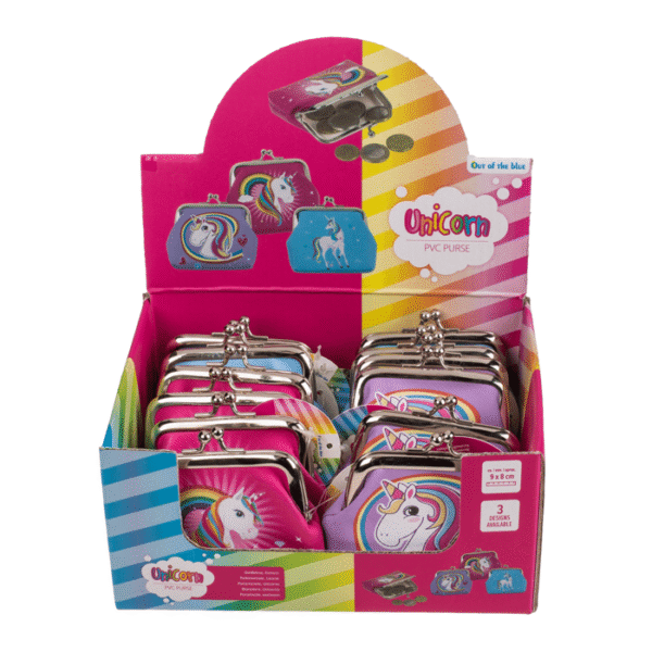 PVC Purse, Unicorn, approx. 9 x 8 cm, 3 ass., 12 pc per Display – The wallet fits perfectly in a handbag and is also easy to find thanks to the natural design. Whether as a purse or as a make-up bag, this product can be converted at your discretion and is spacious enough to store your most important utensils. A perfect cosmetic bag for your beach trip! PVC Purse