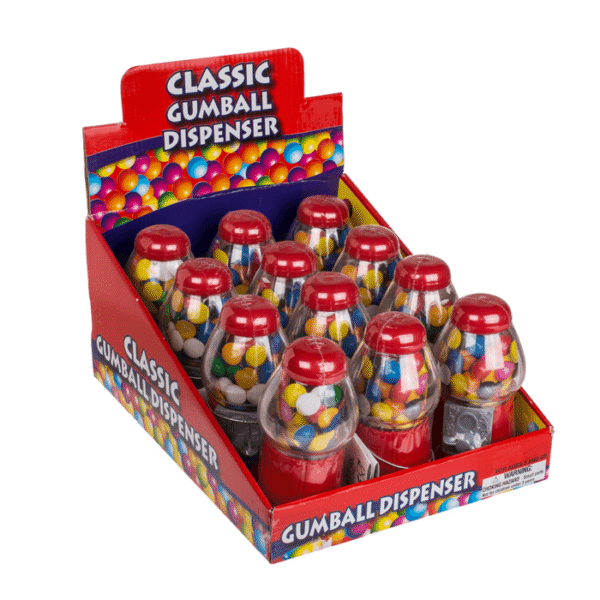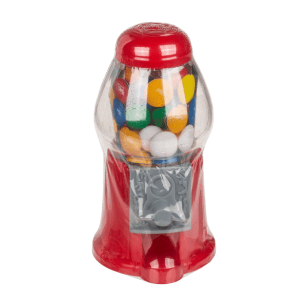 Red Gumball Machine, with ca. 25 g chewing gums, ca. 13 cm, 12 pcs per display – The chewing gum dispenser is a timeless classic and popular with children. Our chewing gum dispenser comes with 90g of colourful chewing gum balls, just waiting to happily hand them out. The machine can be refilled with chewing gum as often as you like and it’s a popular gift.