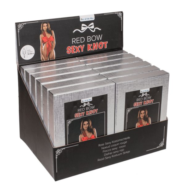 Red sexy costume bow, Sexy Knot, for self wraping, incl. illustrated instructions, for sizes 165 to 180 cm, 12 pcs. per display – With the Naughty Knot, you can transform yourself into an irresistible gift in just a few steps! With the red bow, you’re sure to create a successful surprise while your partner unwraps the gift. The illustrated instructions will help you tie the Naughty Knot properly. Seductive costume