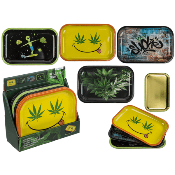 Rolling tray II, ca. 18 x 14 x 1,5 cm, made of X, 4 ass., 12 pcs. per display – tray organizer rolling accessory smoking