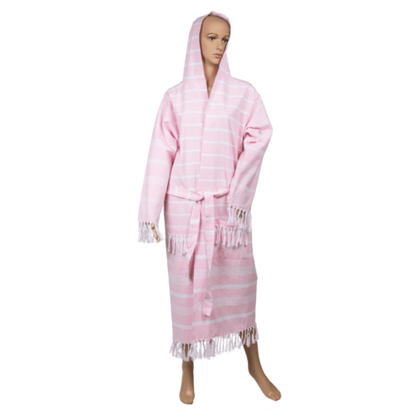 Rosewhite colored fouta hamam bath robe, Size S, 80% cotton & 20% polyester – Our skin-friendly fouta bath robe is made from 80% very soft, durable cotton. It efficiently absorbs water, warms immediately, provides a cosy feeling and dries in no time. The bath robe is particularly suitable for extended wellness days on the beach or for sauna days. Fouta robe