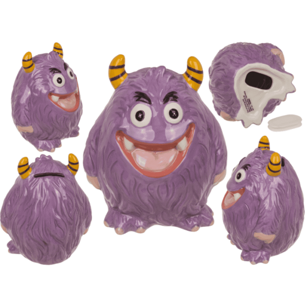 Savings bank, Purple Monster, Piggy bank Coin holder Savings pot Money jar Ceramic bank Purple monster Savings box Kids bank Coin bank Money container